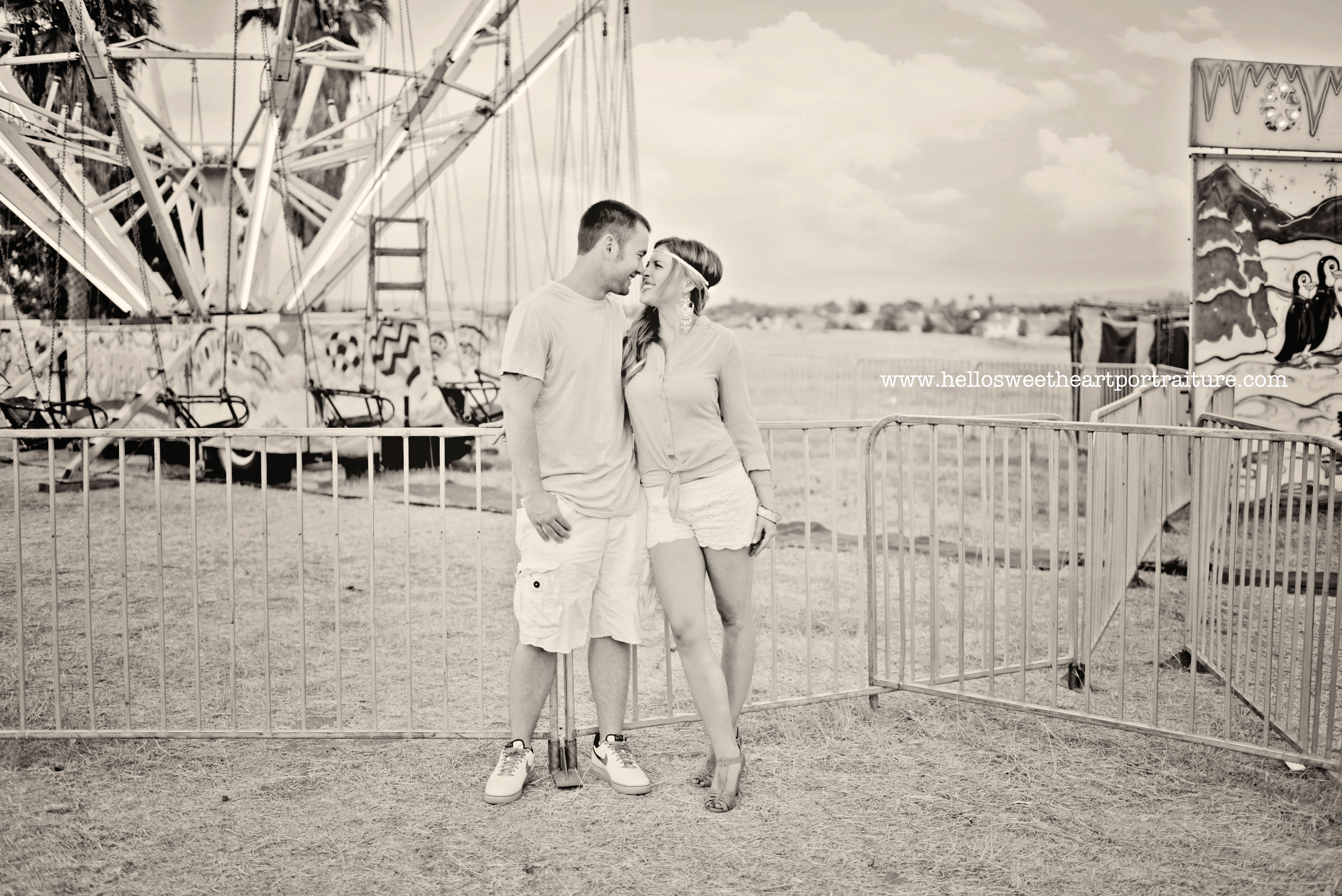 So obviously if I notice a carnival being set up in my neighborhood I squeal like a wee lass who’s had too much haggis. PERFECT location for a couples session. Even MORE perfect location for the creation of my promo video (more news on that at 11). I basically have a tiny carnival happening all of the time in my brain. So with my handy assistant & two beautiful love birds, I was off! for a night of frolicking through the dusty pathways between rides & trying to get carnies to crack a smile. Come on, weird guy in front of the haunted house making a permanent stink face! You know you want to! We took the occasional break for deep fried twinkies or deep fried oreos & deep fried exhaustion from our artery clogging treats, but most of the night we were on a roll capturing more incredible pictures than I knew what to do with! Seriously, can I just join the carnival & be the traveling carnie photographer? Pleaaaassseee? I think can live off of deep fried sugar cakes for at least three years before I keel over & croak. In that time I know I will have had thee most fun out of anyone in the world throughout history ever. Weeee!